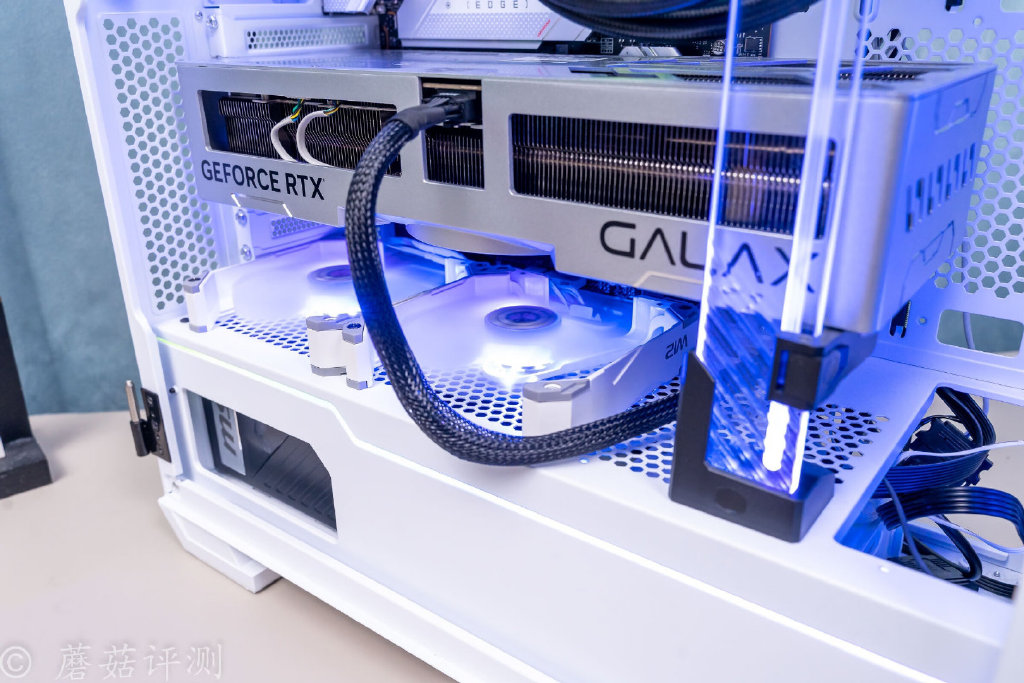 ▼对于影驰RTX4090金属大师OC这张显卡,可以轻松使用一根16Pin的PCIe5.0线供电,非常的简洁。