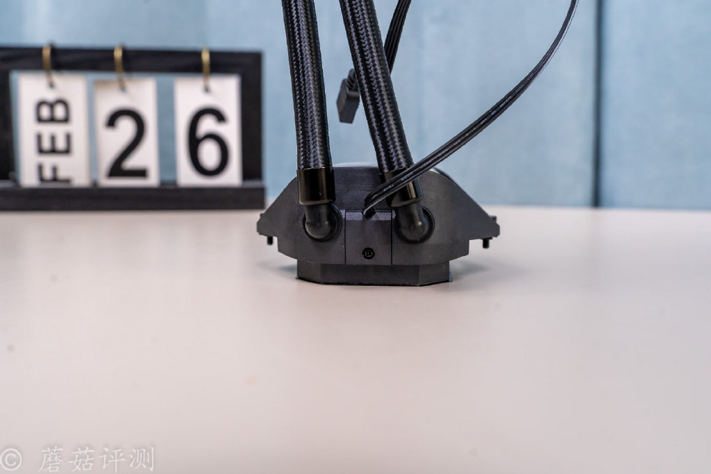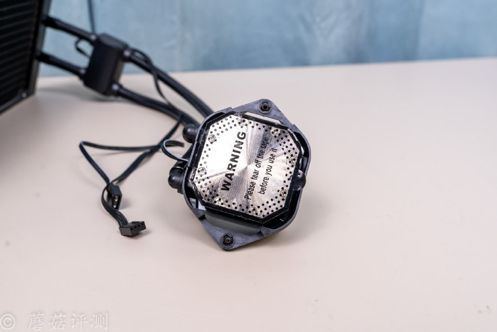说实在话,蘑菇对这款水冷的性能期望并不高。因为这款水冷是德商德静界家的,他家的产品,主打一个静音。这款水冷也有很多静音设计,其中最让蘑菇感觉非常不错的,就是这个外置的、独立的、支持调速的水泵,真的是安静,一点点水声都没有,开机、关机的时候也超级安静。