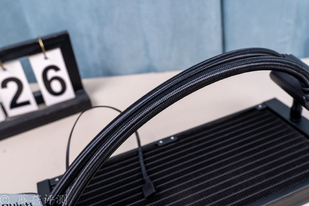 ▼水冷排的进出水管部分,也有金属加强件包裹。