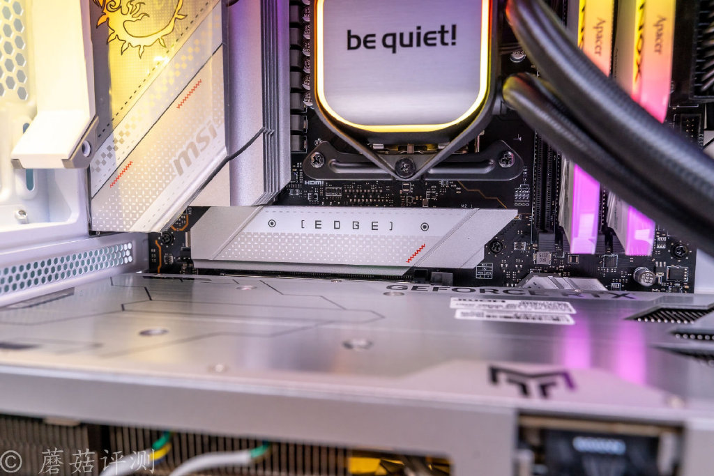 ▼内存用的是宇瞻的NOX暗黑女神,16G*2 3600MHz,可以轻松满足日常使用。另外这套内存的颜值也非常漂亮,内存顶部的RGB灯带非常有设计感,灯效柔和,细节出众。