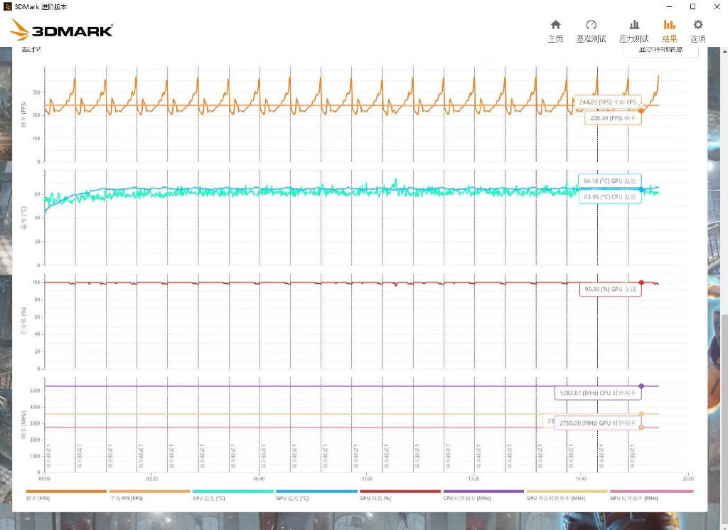 ▼最后跑个3Dmark的压力测试,帧数稳定率在99.4%,非常稳定。